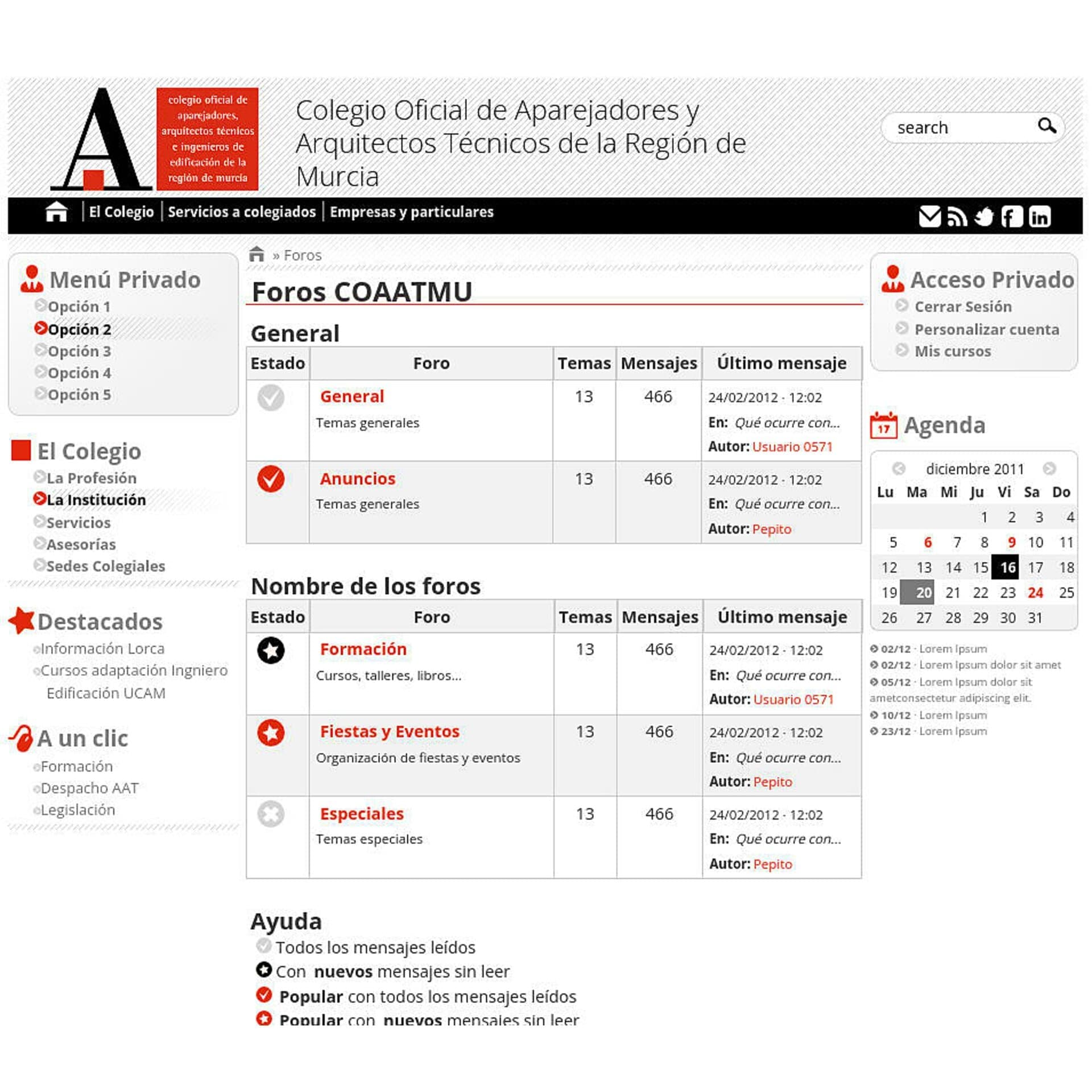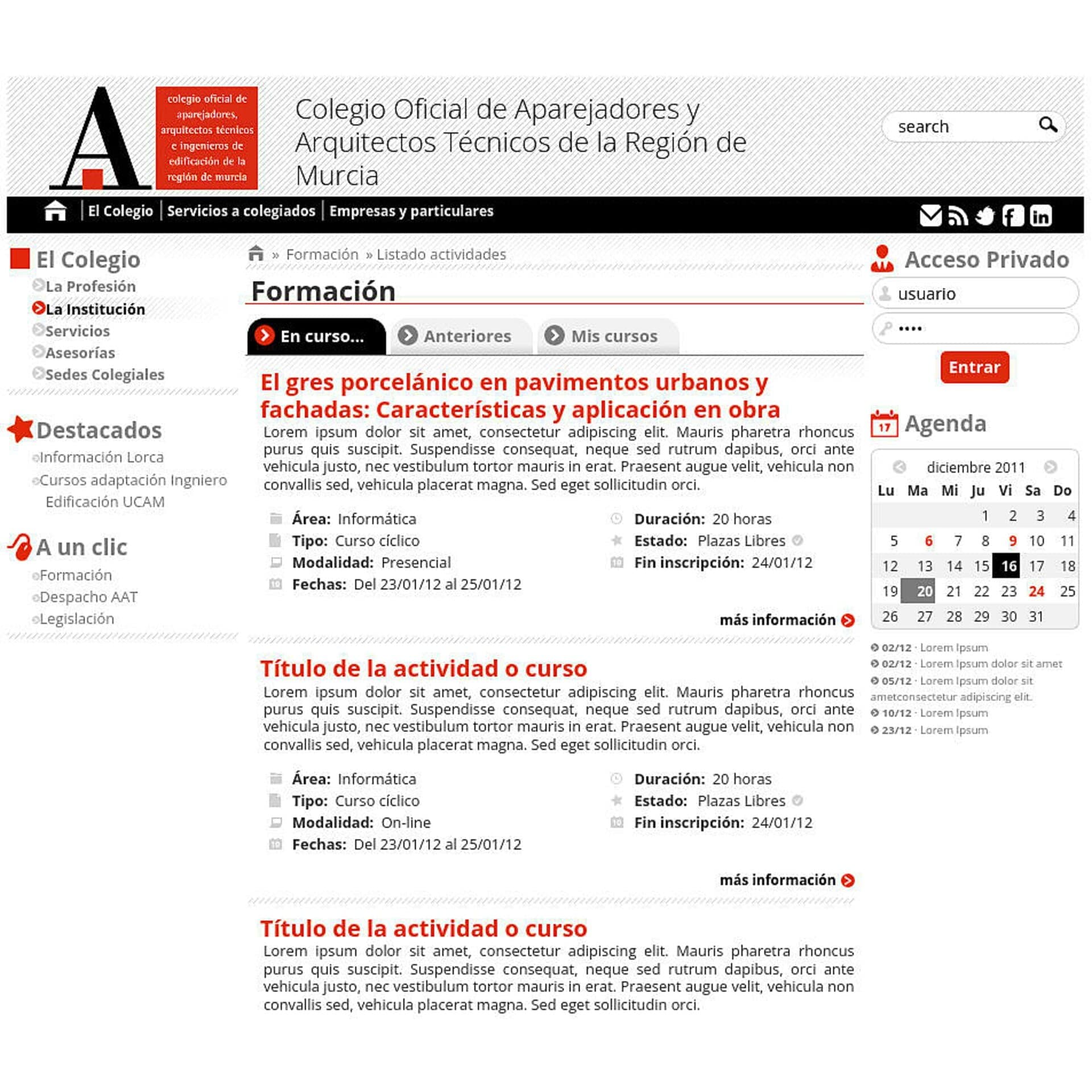 El encargo era modernizar la web del Colegio de Aparejadores y Arquitectos Técnicos de la Región de Murcia para, además, dotarla de nuevas funcionalidades.